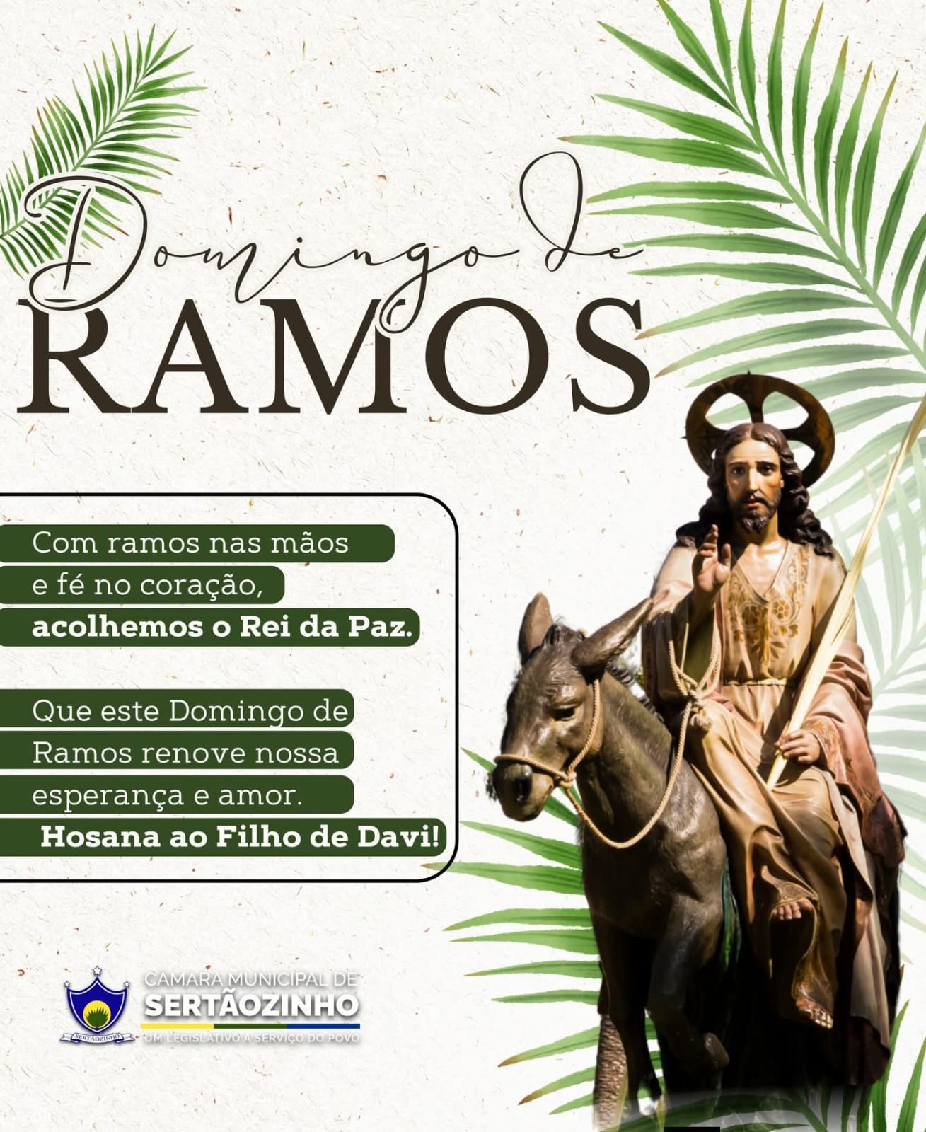 Neste Domingo de Ramos, celebramos a entrada triunfal de Jesus, renovando nossa fé, esperança e amor. Que este momento nos inspire a acolher a paz em nossos corações e seguir com humildade e gratidão. 🌿✨ 29/03/2026 Nenhum comentário Leia mais »